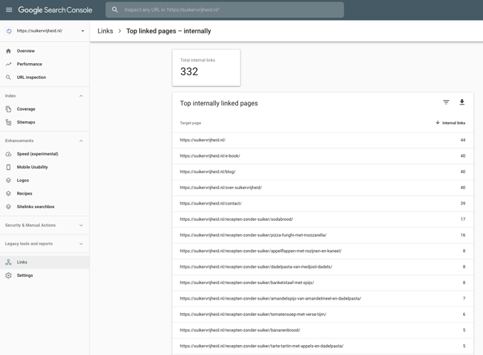 Ook is het belangrijk om tussen pagina’s binnen je eigen website te verwijzen. Als je hier al een tijdje mee bezig bent, kun je het overzicht kwijtraken. In Search Console heb je een volledige lijst met pagina’s met interne links. Wanneer je hierop klikt zie je welke pagina’s er naar deze link verwijzen. Zo kan je dus aan de slag met interne linkbuilding.