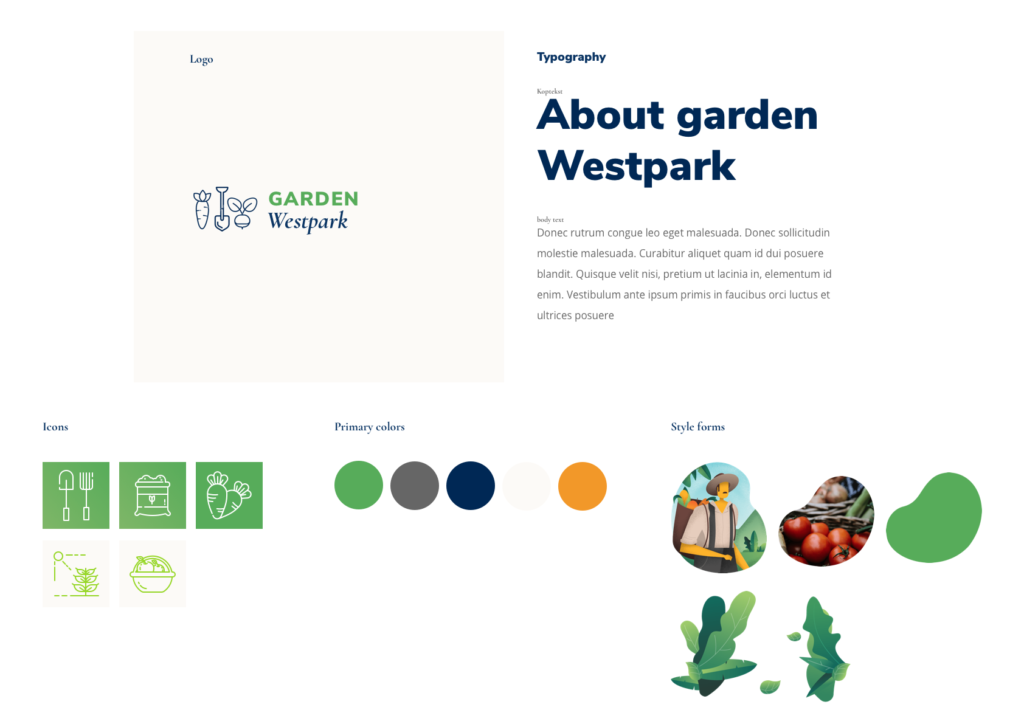 A basic style guide outlines the logo, main colours, and fonts that make up your visual identity.